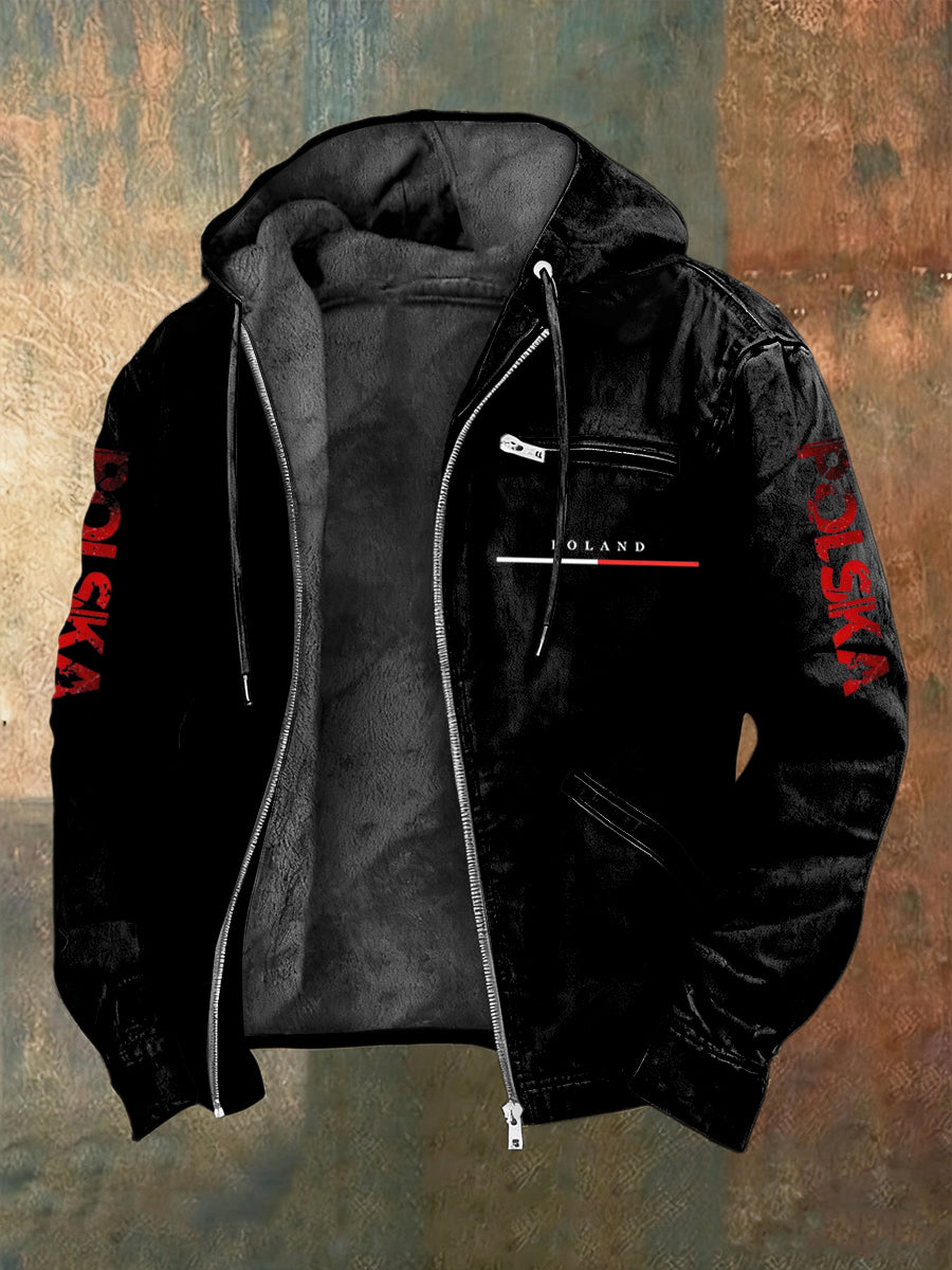 Retro abstrakcyjna polska flaga casualowa kurtka z kapturem z polarową podszewką