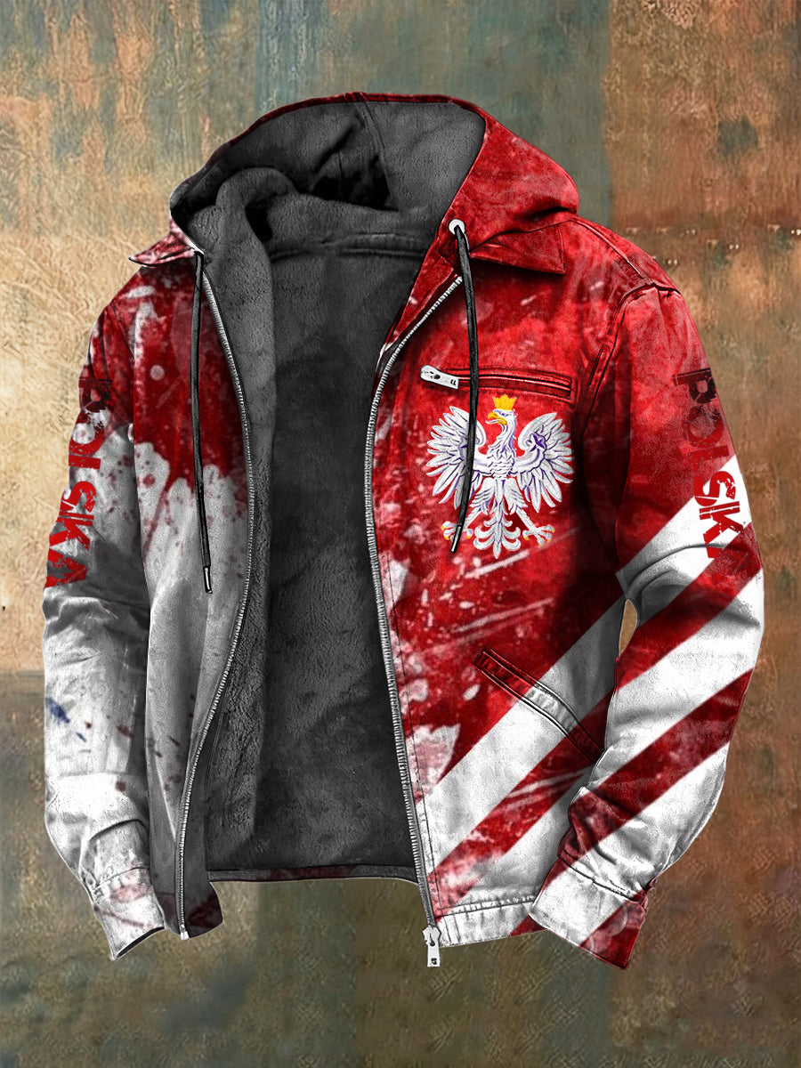Retro Abstrakcyjna polska kurtka z kapturem z polarem z polarem