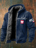 Retro abstrakcyjny polski orzeł Casualowa kurtka z kapturem z kapturem