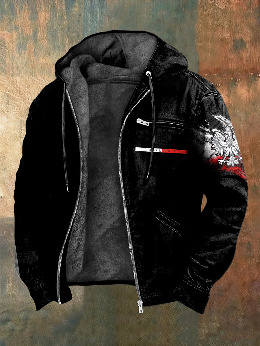 Retro polska flaga orzeł Casualowa kurtka z kapturem z polarową podszewką