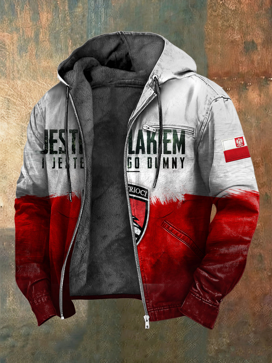 Retro Polski Orł Godło Abstrakcyjna kurtka z kapturem z polarem