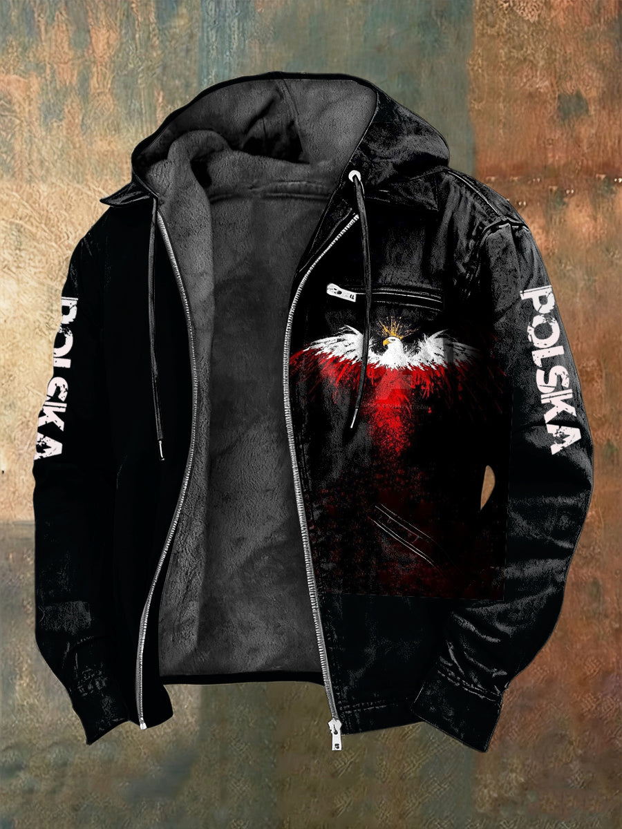 Retro polski orzeł flaga abstrakcyjna kurtka z kapturem z polarem