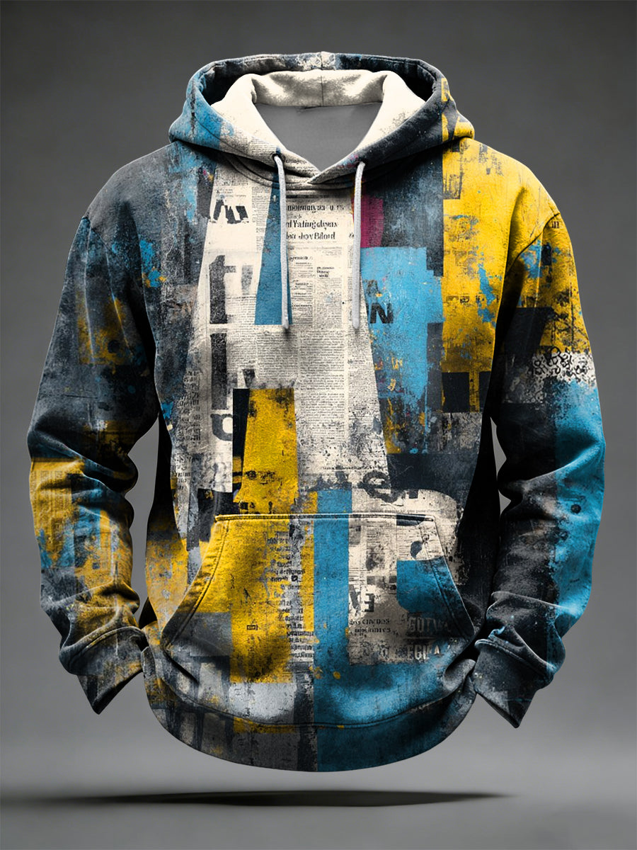 Retro w trudnej sytuacji abstrakcyjna gazeta drukowana na co dzień bluza z kapturem