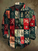 Vintage Plaid Print Boże Narodzenie Casual Koszula z długim rękawem